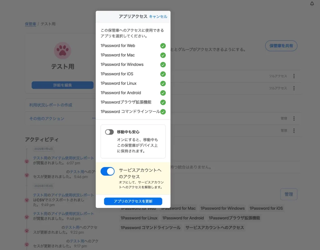 さらに、保管庫やアイテムの共有設定を調整することで、ログイン情報の共有相手にパスワード自体を見せずにアクセスのみ許可することも可能です。これは、外部のゲストユーザーなどとログイン情報を共有する場合などに特に便利です。