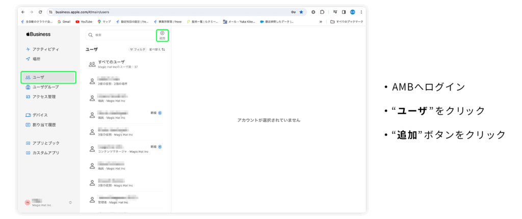 以下では、ABM の登録が完了していることを前提に、ABMでの手動作成方法について説明します。