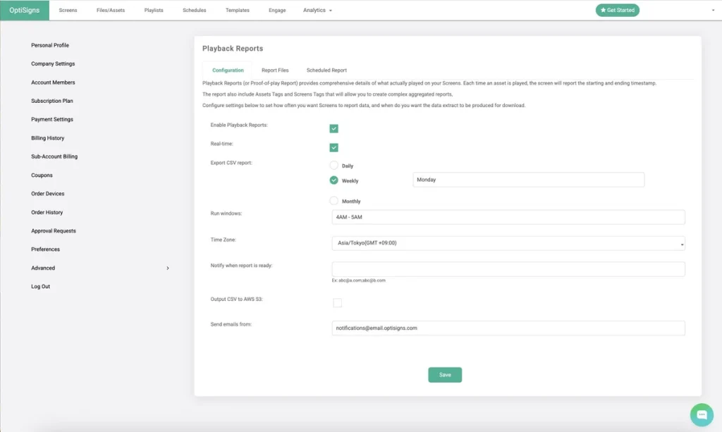 この記事では、OptiSigns の再生レポート機能の基本、レポートの内容、そしてレポートの作成方法を、わかりやすく解説します。
