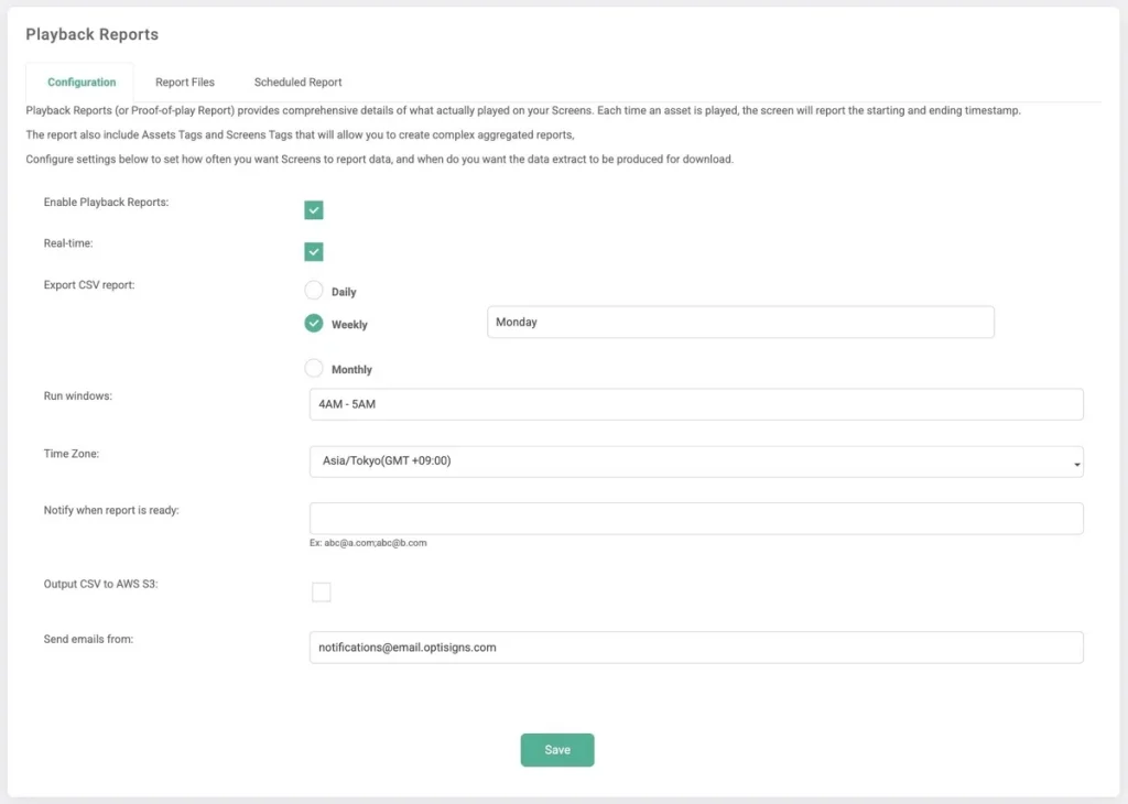 • Enable Playback Reports: 再生レポートの有効・無効